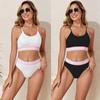Introducing a stylish and elegant high-waist bandeau bikini swimsuit, designed exclusively for women seeking both comfort and fashion. Featuring a solid pattern, this swimsuit offers a chic and timeless look that's perfect for a day at the beach or by the pool. Crafted from high-quality polyester material, it ensures a comfortable fit and durability in various water conditions. The high-waist design enhances your natural curves, providing support and a flattering silhouette, while the bandeau top offers a trendy touch to your swimwear collection. Enjoy sunbathing or swimming with confidence and style in this must-have bikini.