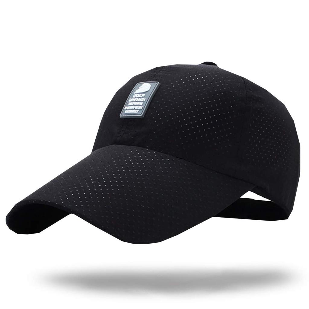 WHITE FANG Hat Mesh Cap Wide Brim Logo Golf Running Men Women CA207 (01 Black)