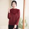 Embrace the cozy warmth of the autumn and winter seasons with this fleece sweater, designed specifically for middle-aged and elderly women. Crafted from soft, durable polyester, this sweater offers a loose fit for maximum comfort. Featuring a semi-high neck to provide extra warmth, it's perfect for chilly days. The solid pattern and long sleeves add a touch of classic style, making it a versatile addition to any wardrobe.