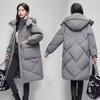 Women's Hooded Mid-Length Down Cotton Coat - Over-the-Knee Winter Fashion Outerwear