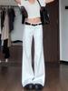 Cement Gray Women's High Waist Retro Micro-Flare Jeans, Slimming Mop-Length, Small to Plus Sizes, for Spring and Autumn.