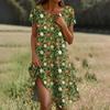 Short Sleeve Boho Dress For Women Casual Loose Fit Summer Sundress Floral Print Dress With Pockets