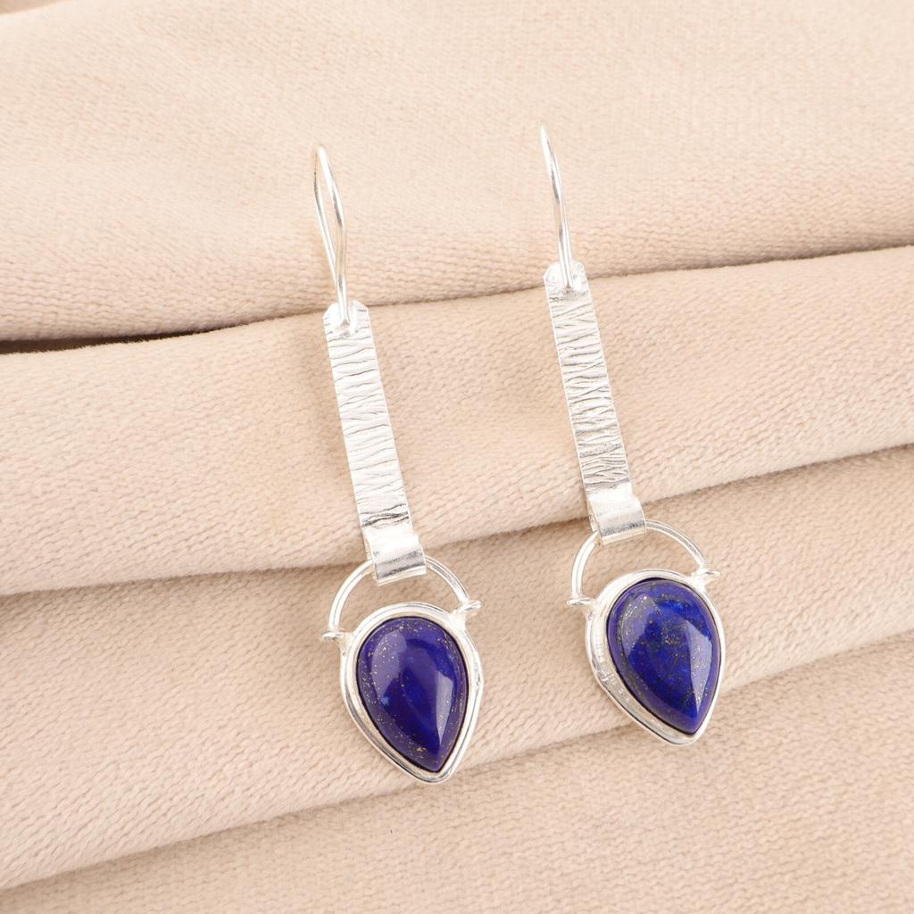 Lapis Lazuli Gemstone 925 Sterling Silver Handmade Earrings 2.3" New Year Gift EE-166-20