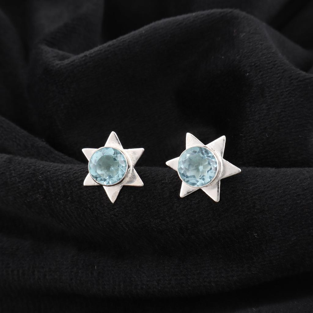 Sky Blue Topaz Gemstone 925 Sterling Silver Jewelry Handmade Stud Earrings 0.44" EE-175-7