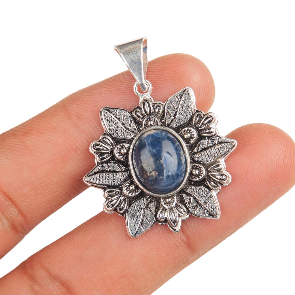 Natural Sodalite Gemstone 925 Sterling Silver Ethnic Jewelry Women Pendant 1.45" CP-14-14