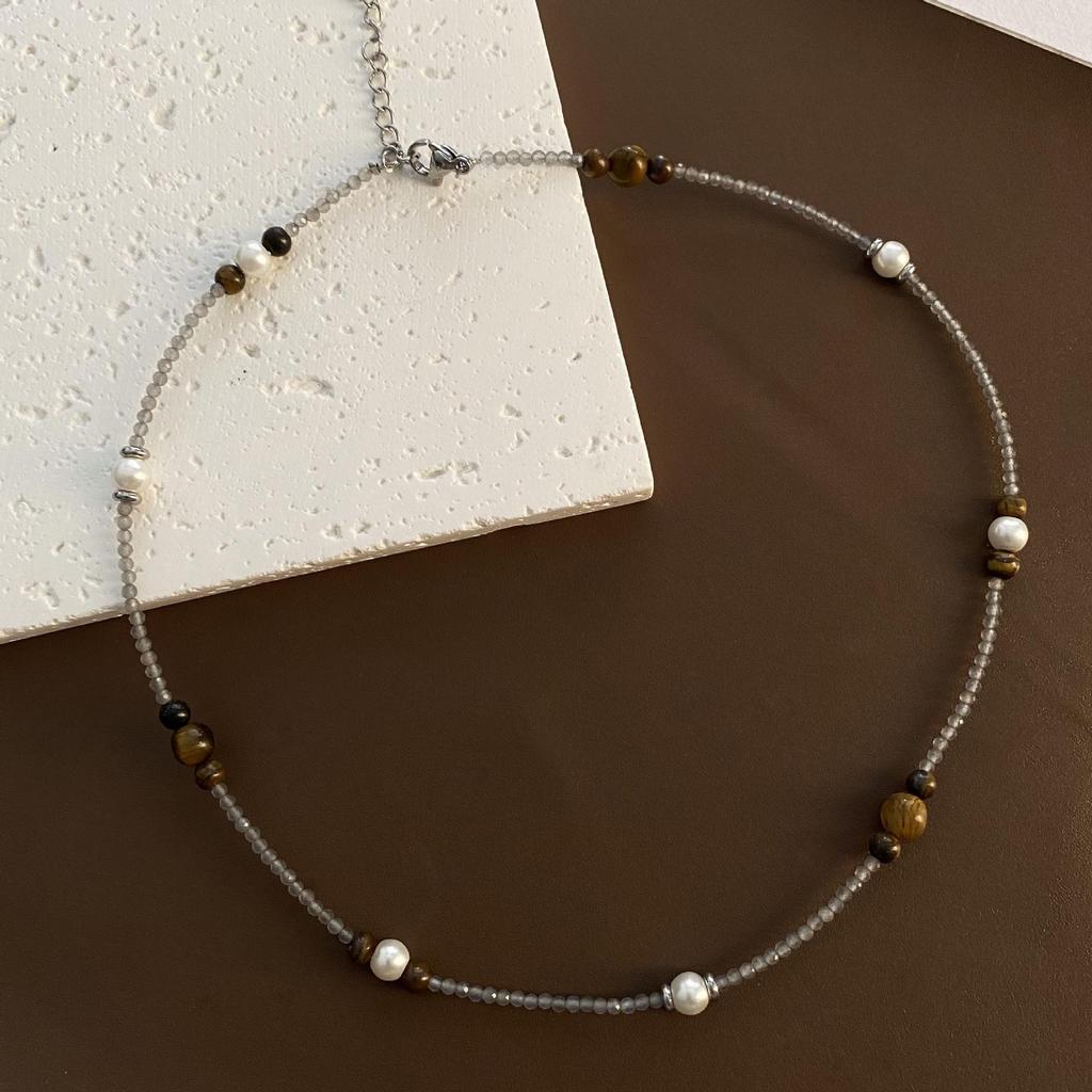 Handmade Tiger Eye & Imitation Pearl Clavicle Chain Necklace - Women's Fashionable & Versatile Accessory