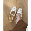 Baotou slippers women's retro woven hollow square head thick heel half drag empty slippers