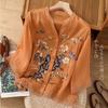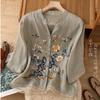 High-end Cotton and Linen Tops Female Summer New Embroidered Cardigan Shirt New Chinese Style Patchwork Bag Buckle Shirt