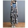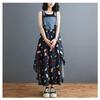 Women's Loose Chiffon Printed Denim Suspender Mid Length Dress