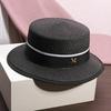 Summer vacation hat women's strap alphabet straw hat seaside sunshade sunscreen hat versatile flat top hat