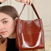Retro-style Small Bucket Bag Made of Cowhide and Genuine Leather Shoulder Bag