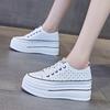 Spring Autumn Flat Platform Genuine Leather Shoes Women Fashion Sneakers Black White Height Increasing Shoes 8cm