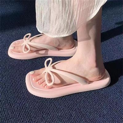 Žabky dievča nosí papuče v rozprávkovom štýle papuče s mašľou žabky mäkká podrážka jednofarebné plážové ľahké šľapky