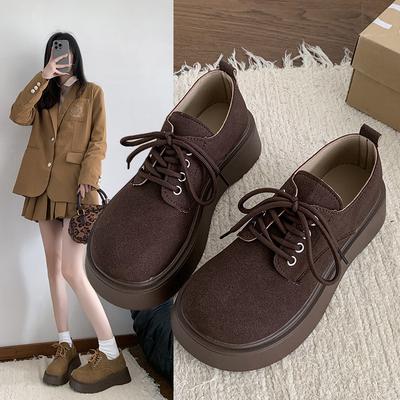 Dámske mokasíny z pravej kože s okrúhlou špičkou a hrubou podrážkou - Retro britský štýl na jar a jeseň 2024