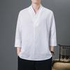 Spring Summer 2025 New Chinese Style T-Shirts Fashion Men Three-Quarter Sleeve V-Neck Tops Tees Men Casual Solid-Color Hanfu