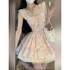 Homemade Sweet Spice Girl Small Flying Sleeves Gentle Wind Floral Waist Slim Skinny Square Neck Princess Dress Fluffy Dress Women