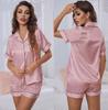 Women's Summer Striped Pajama Set: Short Sleeve, Solid Color, Casual Homewear
