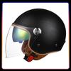 Daul Lens Open Face Motorcycle Helmets Leather Retro 3/4 Jet Moto Helmet with Double Visor Safety Riding 3/4 Half Helm DOT