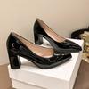 Women's Autumn High Heels Thick Heel Patent Leather Pointed Toe Luxury Leather Shoes