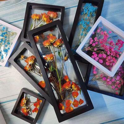 Kreatívny fotorámik s dutými sušenými kvetmi Ručne vyrobený svojpomocne vyrobený 3D fotorámik s veľkou tieňovou škatuľou