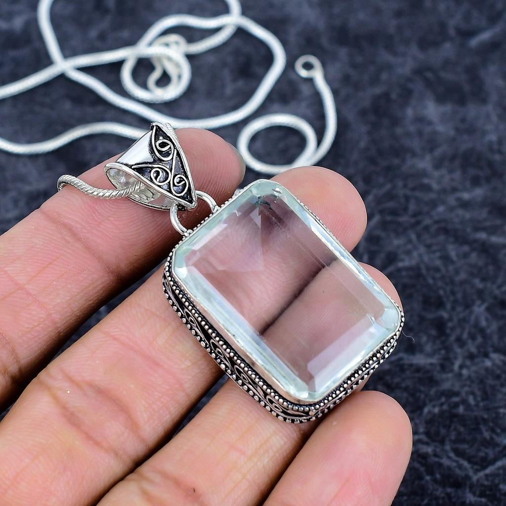 White Topaz Gemstone Handmade 925 Sterling Silver Jewelry Pendant 1.97" M-3227