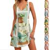 Women's Casual Fashion V-neck Sleeveless Floral Print Side Pocket Dress
