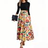 Women's Fashion Casual Belted Three-quarter Sleeve Round Neck Floral Printed Elegant Temperament Dresses