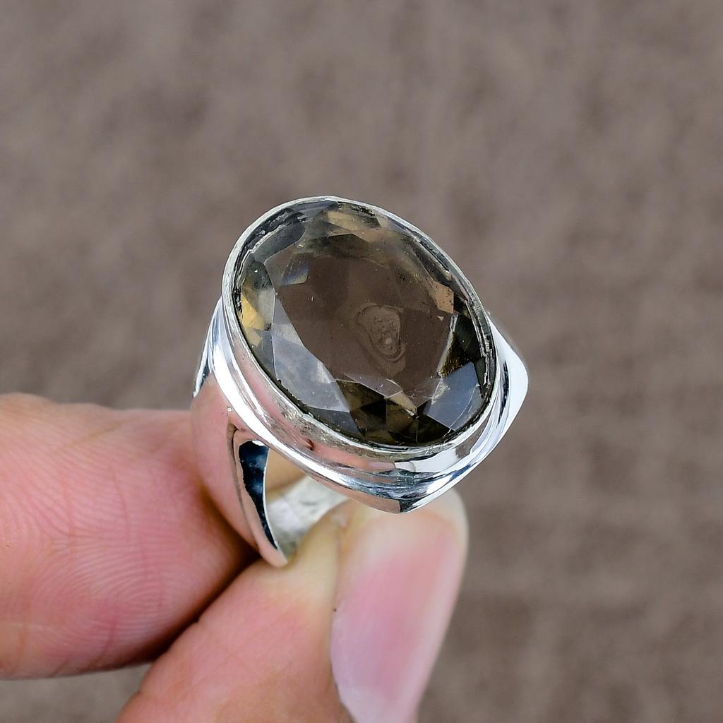 Smoky Topaz Genstone Handmade 925 Sterling Silver Jewelry Ring Size 7.5 KKG-524