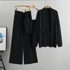 Women's Autumn Loose Casual Fashion Suit Knitted Cardigan Jacket Camisole Wide Leg Pants Three Piece Set