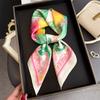 Korean Long Skinny Silk Scarf for Women Bag Tie Lady Hairband Fruit Print Brand Lady Neckerchief Ribbon Bag Handle Ribbon Scarf