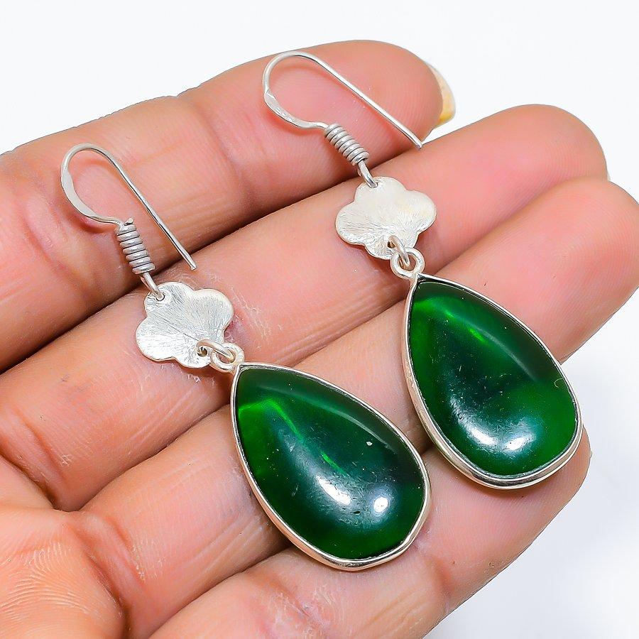Chrome Diopside Gemstone Handmade 925 Sterling Silver Jewelry Earring 2.17" GK-5175