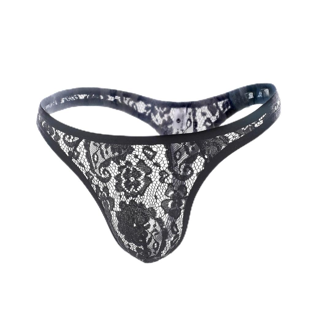 YuanD Floral Lace Sexy Bikini Bold Breathable Innerwear Size Men's T-Back Ultra-Thin G-String Briefs, See-Through Panties, Design, (Black, L)