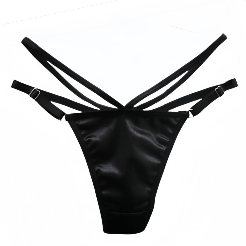 HINICE Sexy Ribbon Adjustable Lingerie Women's T-Back Panties, Satin, Smooth, Double-String, Included, Waist, Low-Rise (Black)