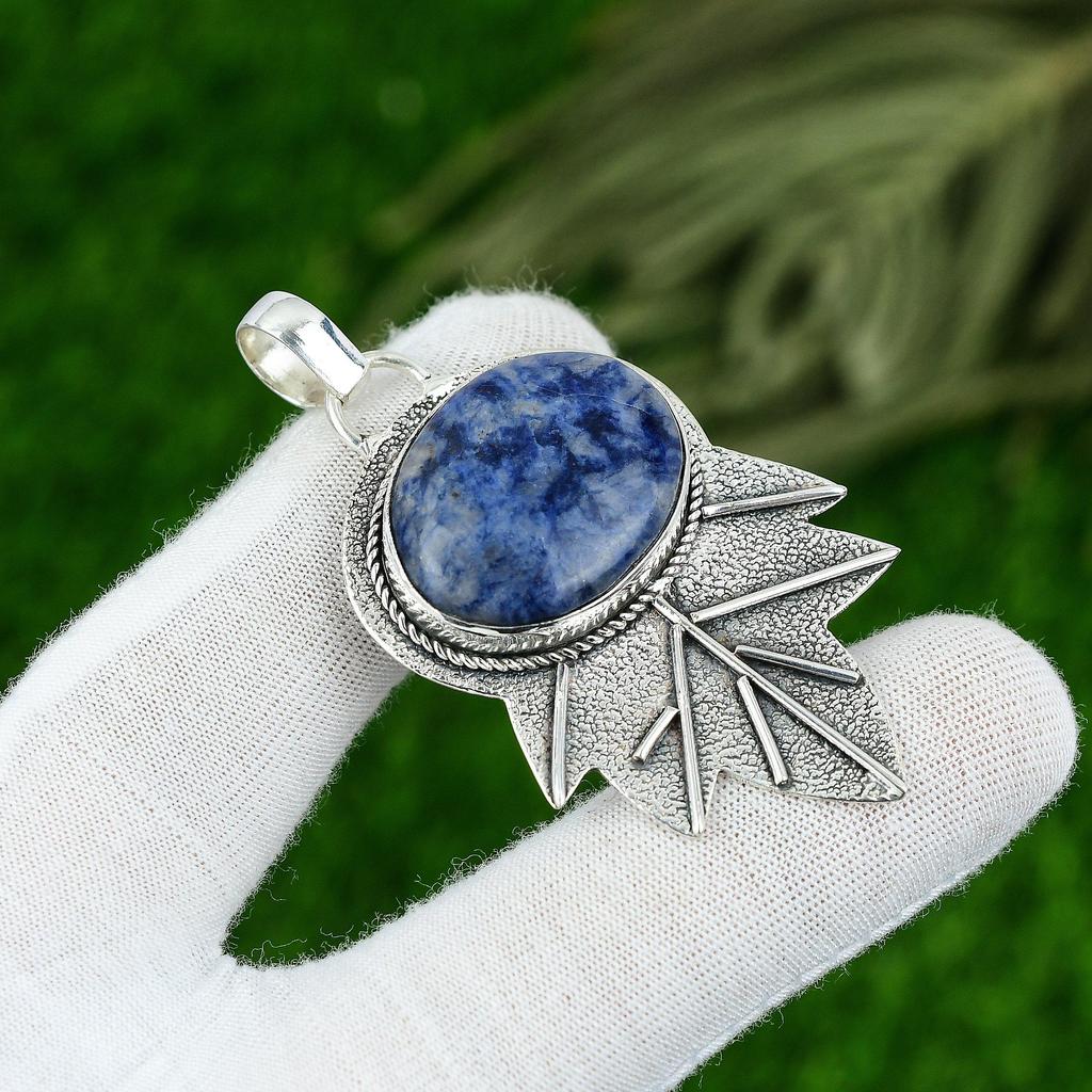 Natural Sodalite Gemstone Pendant 925 Sterling Silver Indian Jewelry For Girls