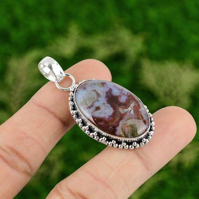 925 Silver Oval Red Brecciated Mookaite Stone Wife Bezel Wedding Pendant Jewelry