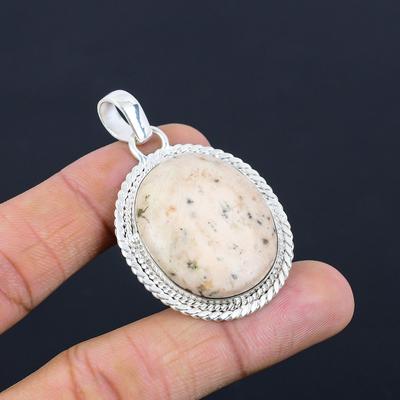 Natural Scolecite Gemstone Indian Jewelry 925 Sterling Silver Pendant For Girls