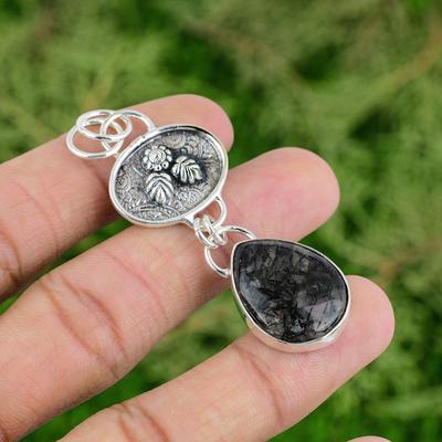 Prívesok z čierneho rutilového kremeňa Originálny prívesok z drahokamu Prívesok zo striebra rýdzosti 925 Ručne vyrobené šperky Darčeky pre ňu
