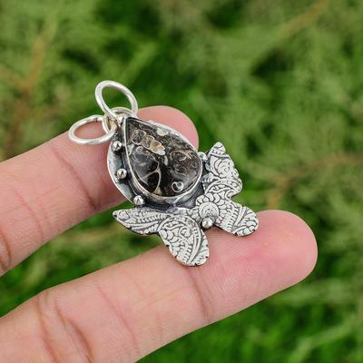 Pear Natural Turritella Agate Mozambique Garnet 925 Silver New Pendant Jewelry