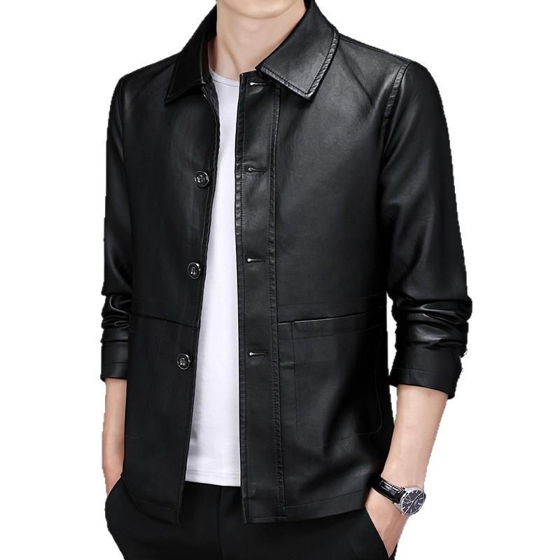 Men's Leather Jacket Business Lapel Casual Plus Size Motorcycle PU Leather Jacket