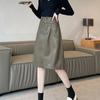 Chic PU Leather A-Line Midi Skirt for Women - 2023 Korean Style Spring & Autumn Collection