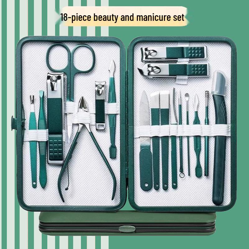 18-Piece Dark Green Slant Mouth Nail Clipper Manicure Set