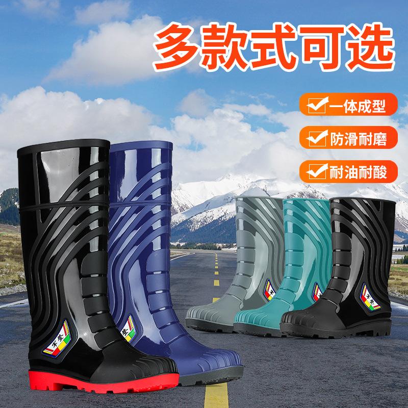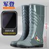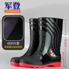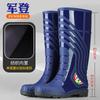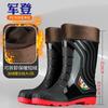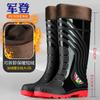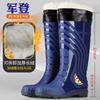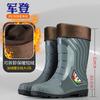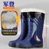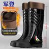 Fashion rain boots Jundeng men's and women's couples medium and high rain shoes integrated thickened non-slip outdoor wading shoes men's rubber shoes