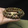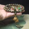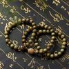 Green Sandalwood Gold Thread Double Wrap Bracelet with Lion Dance Ring - Wooden Buddhist Beads, Chinese Style Couple Accessory