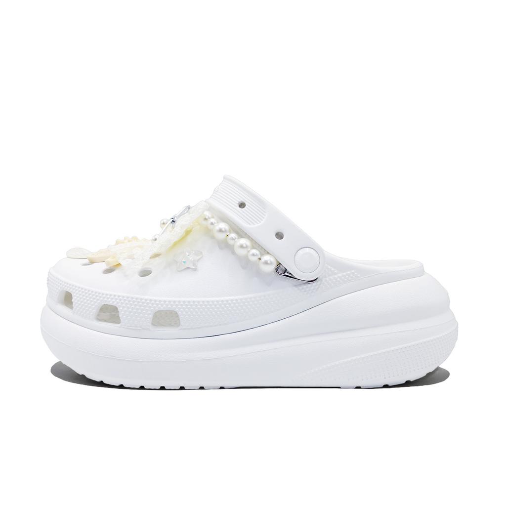 Crocs Crush Clog Party EVA Beach Holiday Relaxed and Comfortable Classic Versatile Fashion Trend Hole Shoes Unisex White