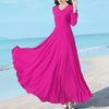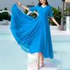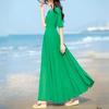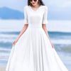 Letná móda Nové kórejské jednoduché elegantné šifónové šaty strednej dĺžky Jednofarebné s výstrihom do V, zipsom v páse, patchworkové šaty s motýlikovými rukávmi