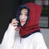Women's Fleece Lined Thickened Winter Outdoor Cycling Wool Hat Windproof Cold Resistant One Piece Knitted Hat with Neck Protection