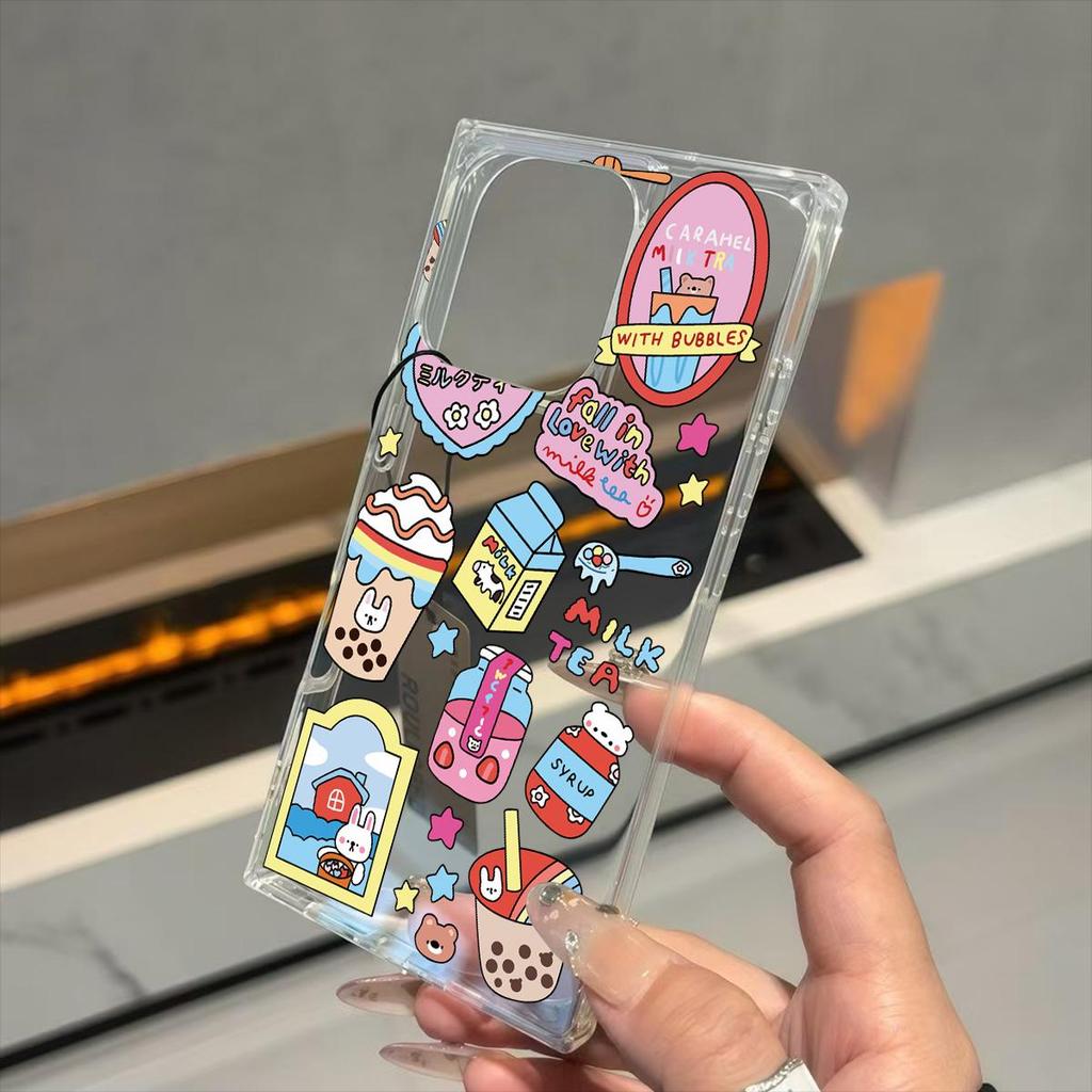 Clear Square Back Tube Case Protection For iPhone 14 Pro Max 12 13 16 ProMax 15 Plus 11 Anti-Oxygen,Milk Tea Pattern Casing