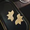Gold Color Exaggerated Vintage Style Earrings Made of Metal Delicate Textured Leaf Geometric Irregular Earring Women Y2k Zircon
