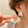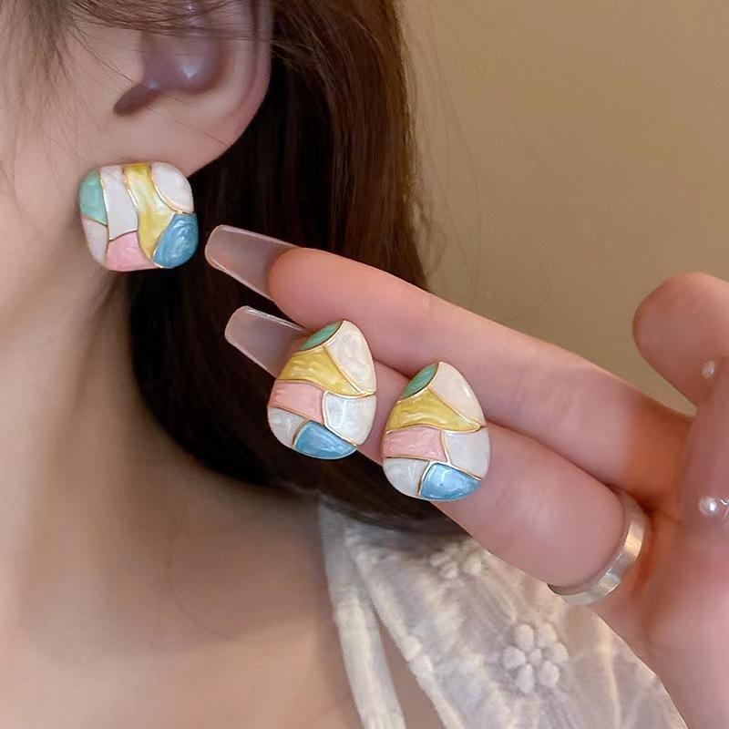 Colorful Glaze Water Drop Women's Stud Earrings Blue Pink Enamel Multi-colored Grids Small Square Earrings for Girls Boho Jewery