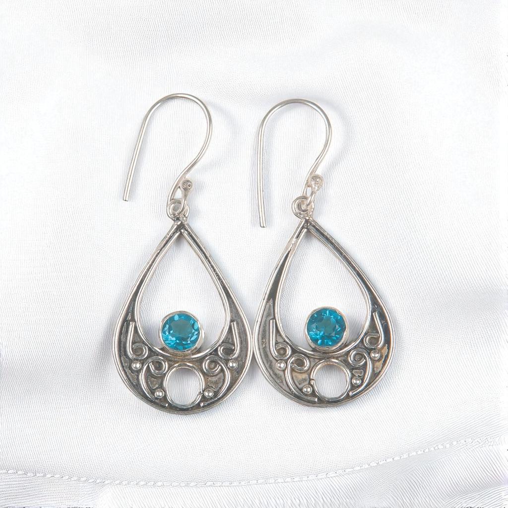 Swiss Blue Topaz Gemstone 925 Sterling Silver Handcrafted Jewelry Earrings 1.91"